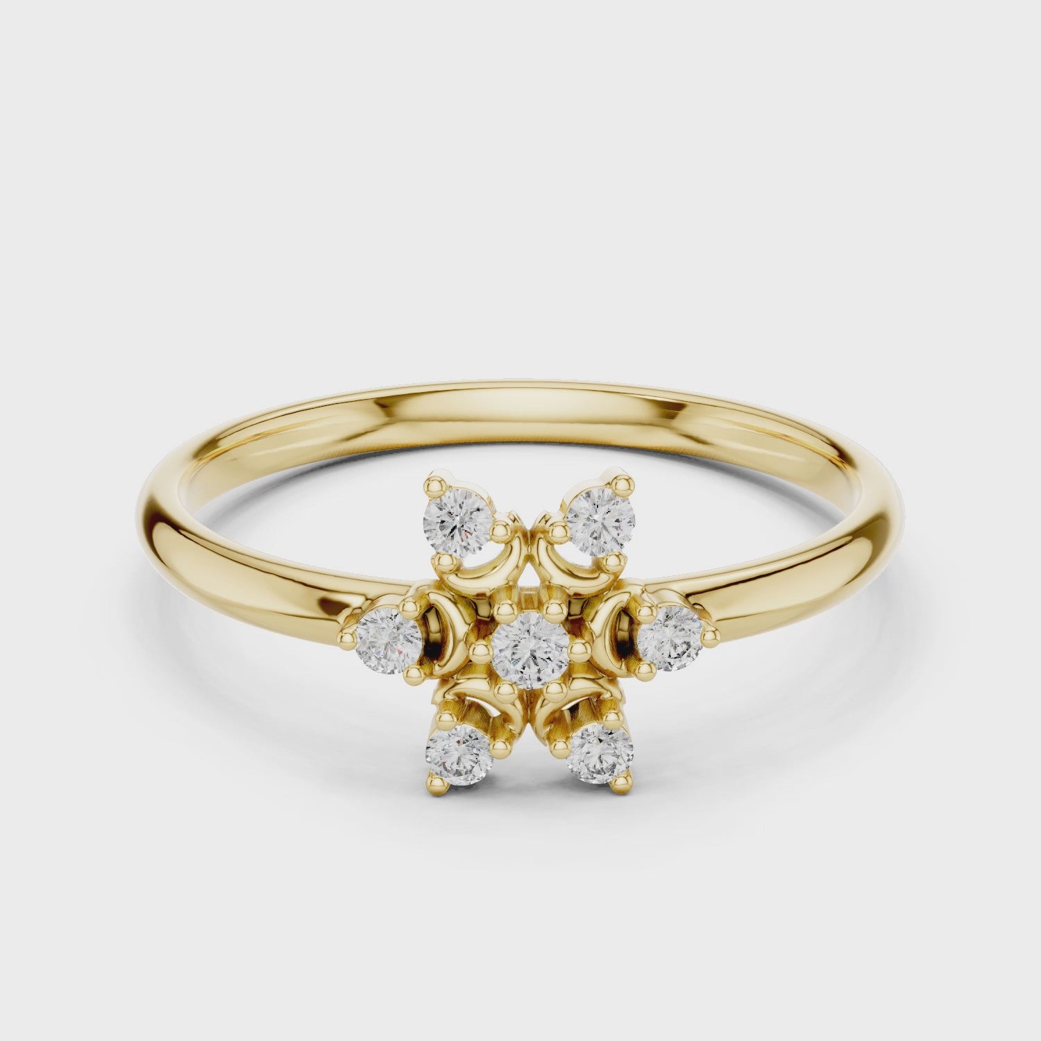 Contemporary Floral Diamond Ring in Yellow Gold | Also in Rose Gold, Platinum & 925 Silver