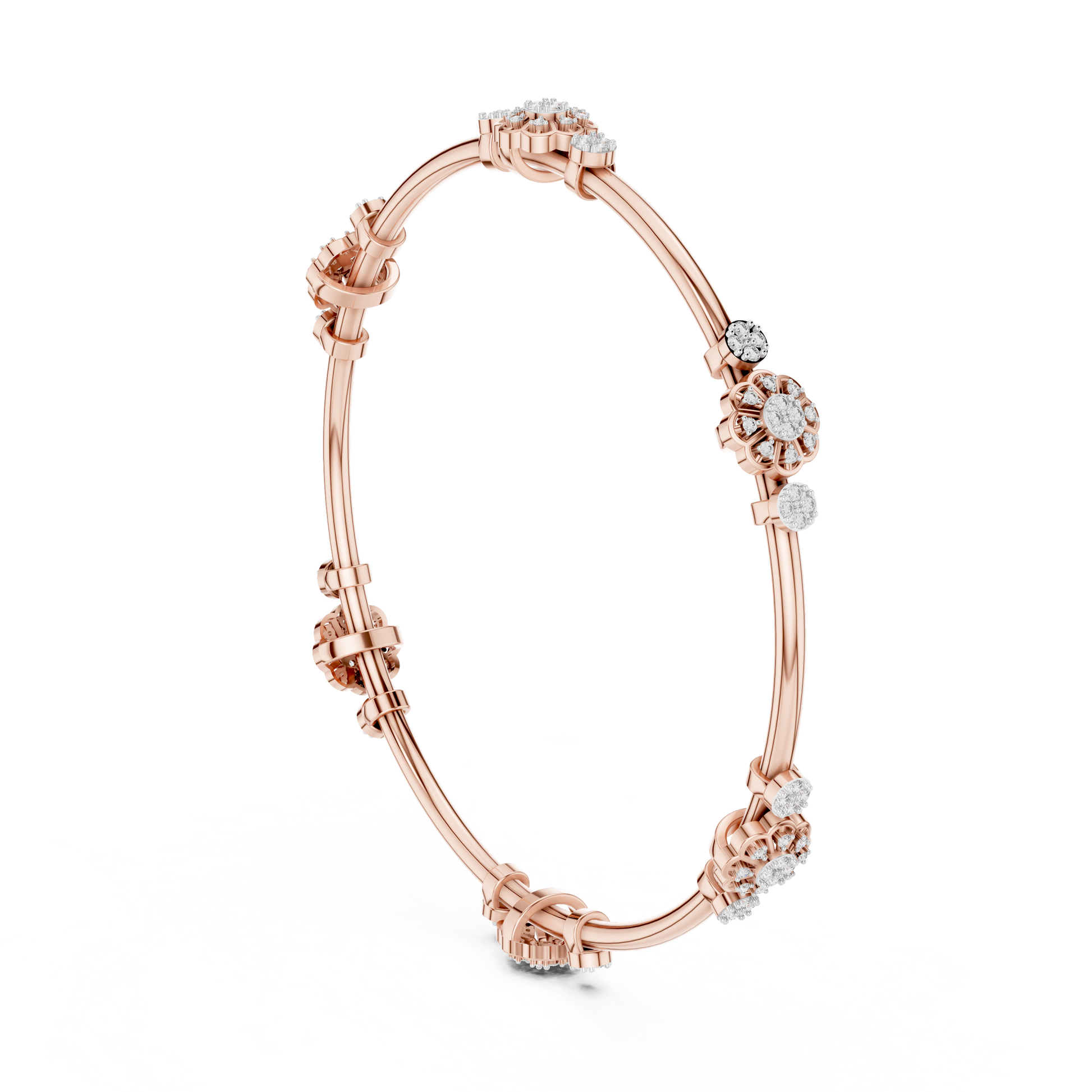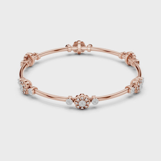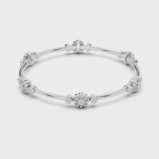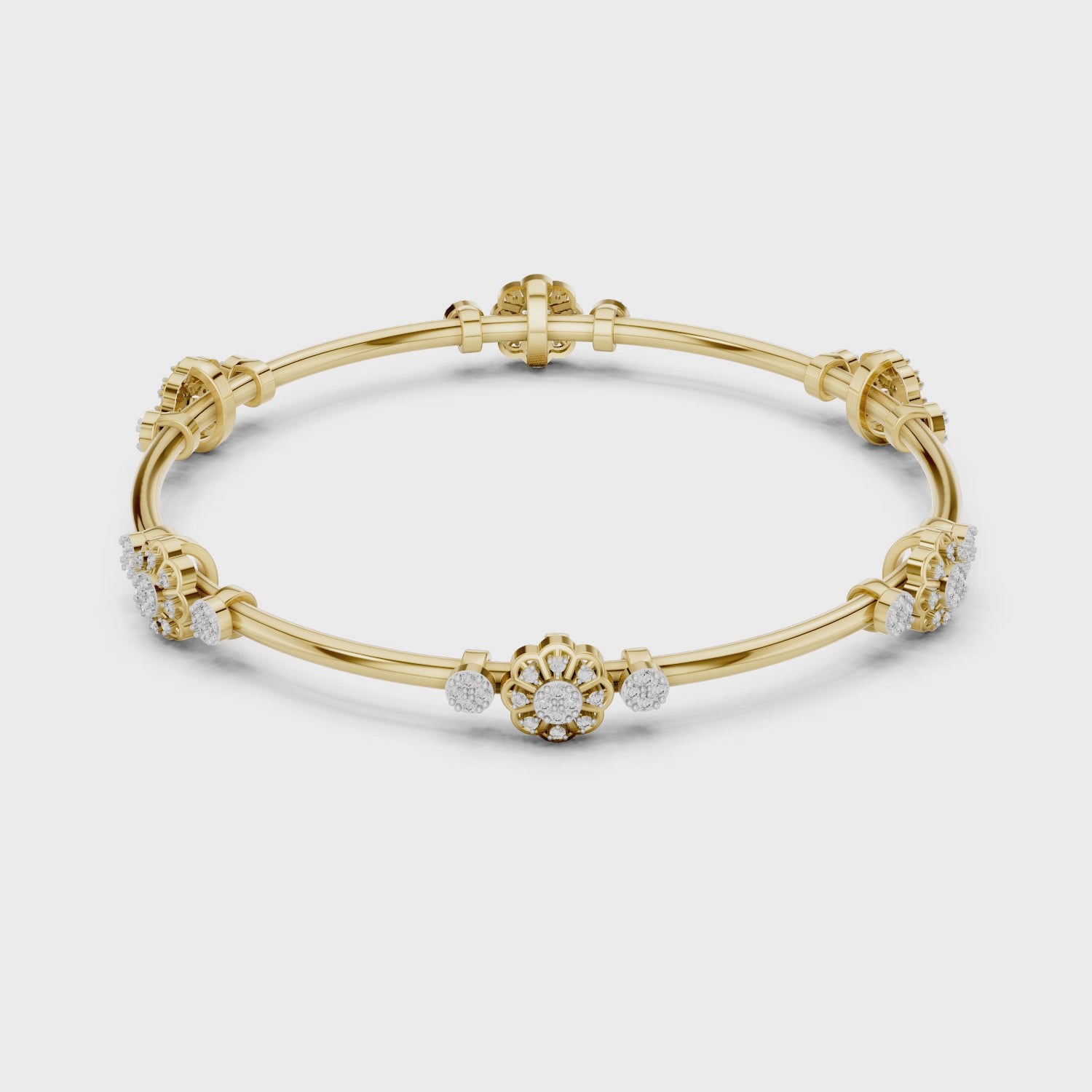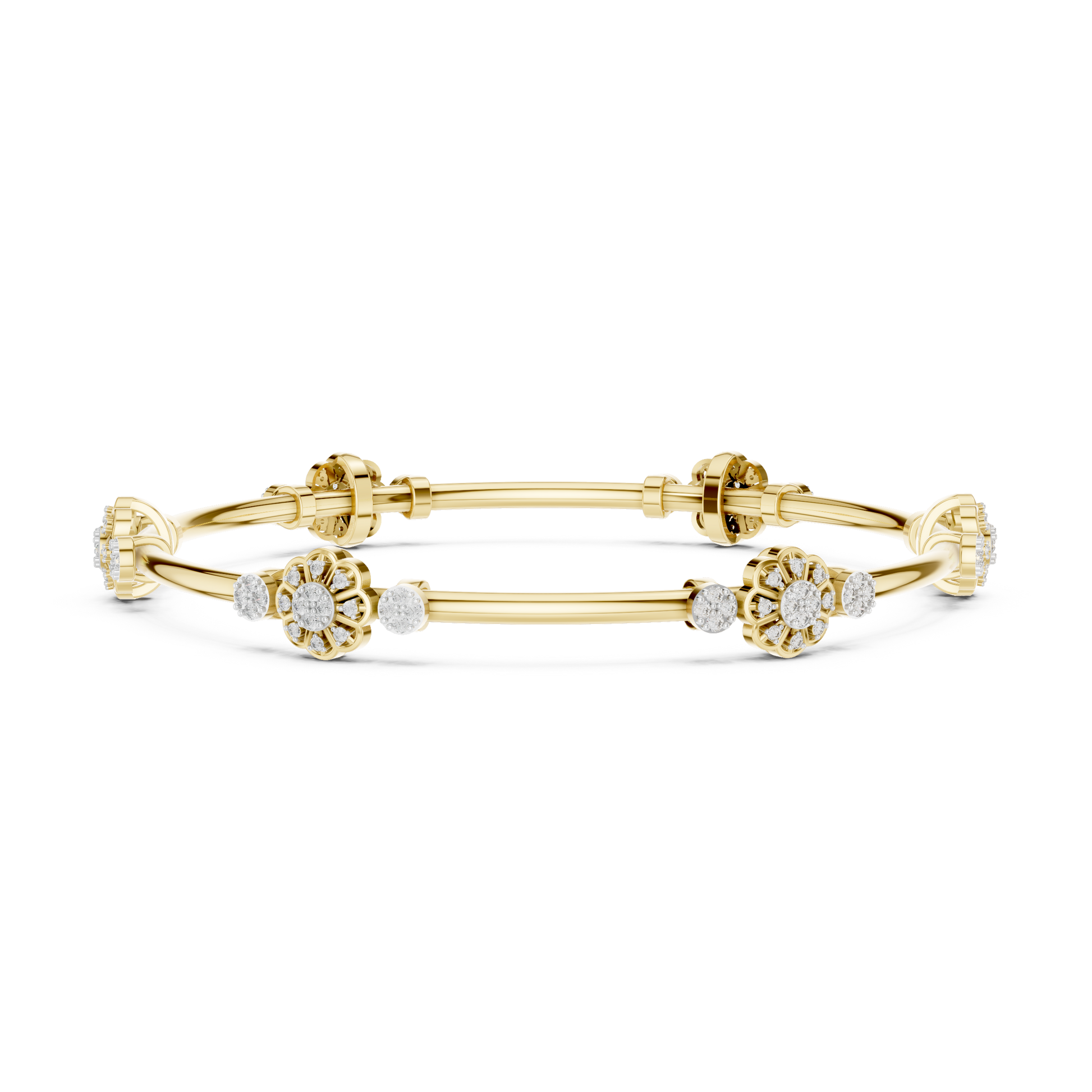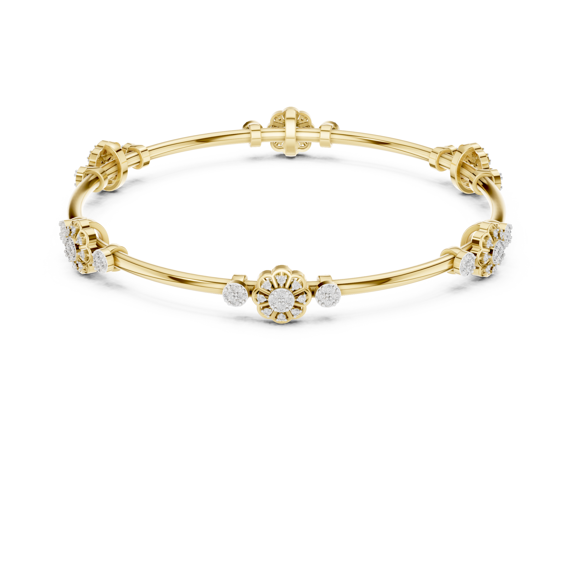 Delicately crafted for elegance, our Floral Diamond Bangle Bracelet showcases intricate flower-shaped diamond settings paired with brilliant round diamond accents. This luxurious bracelet brings together tradition and modern sophistication, making it perfect for weddings, festive wear, or a premium everyday accessory.