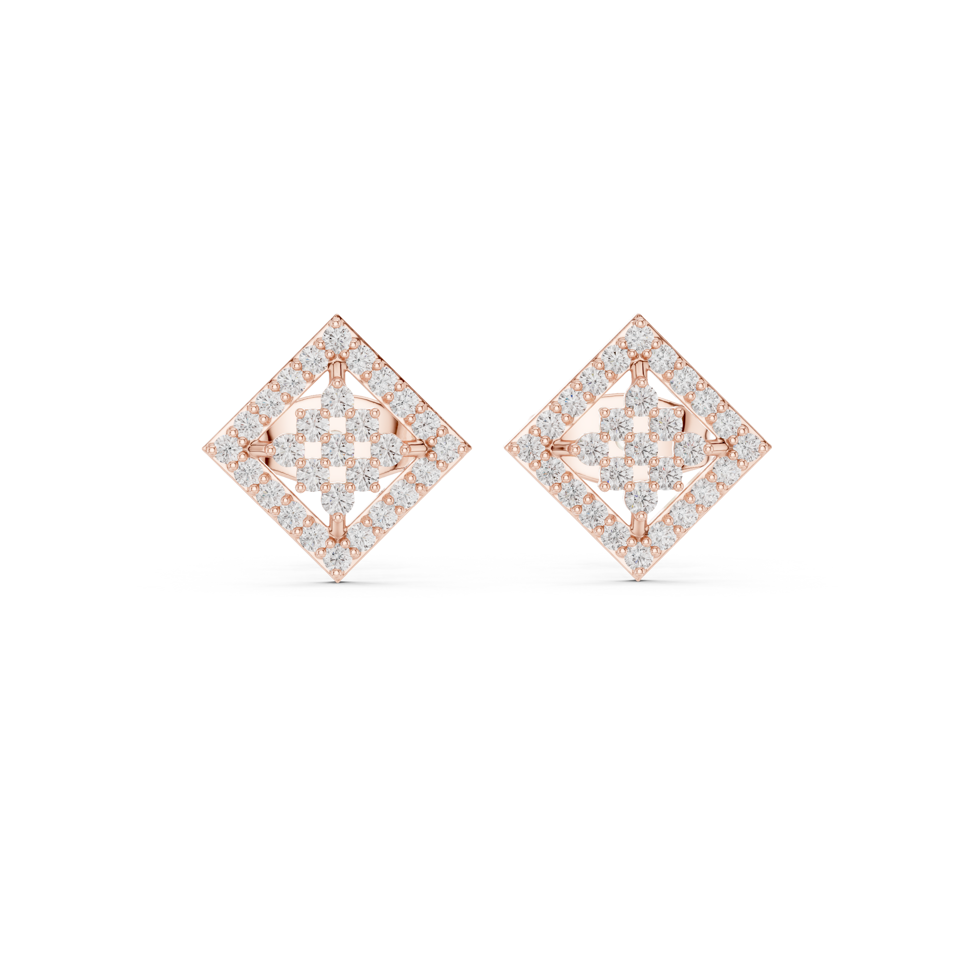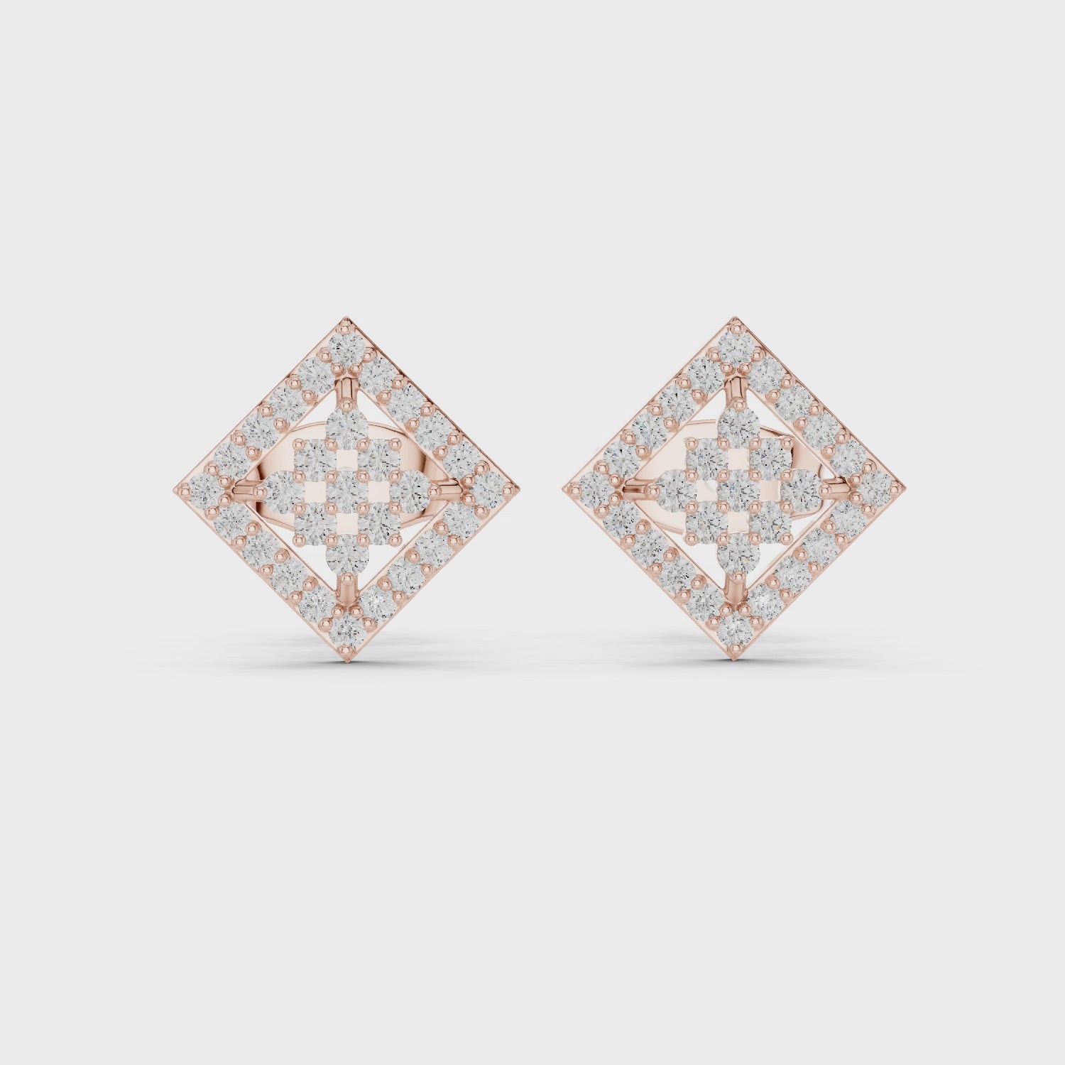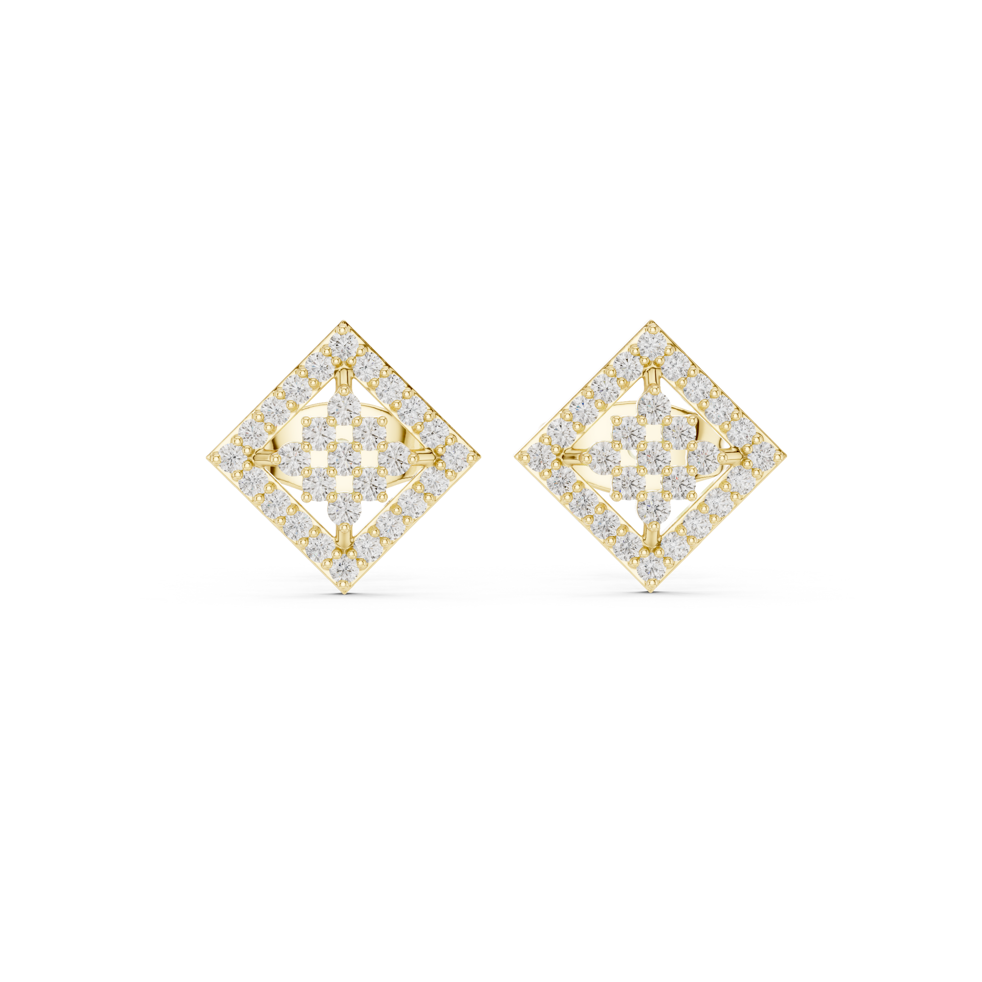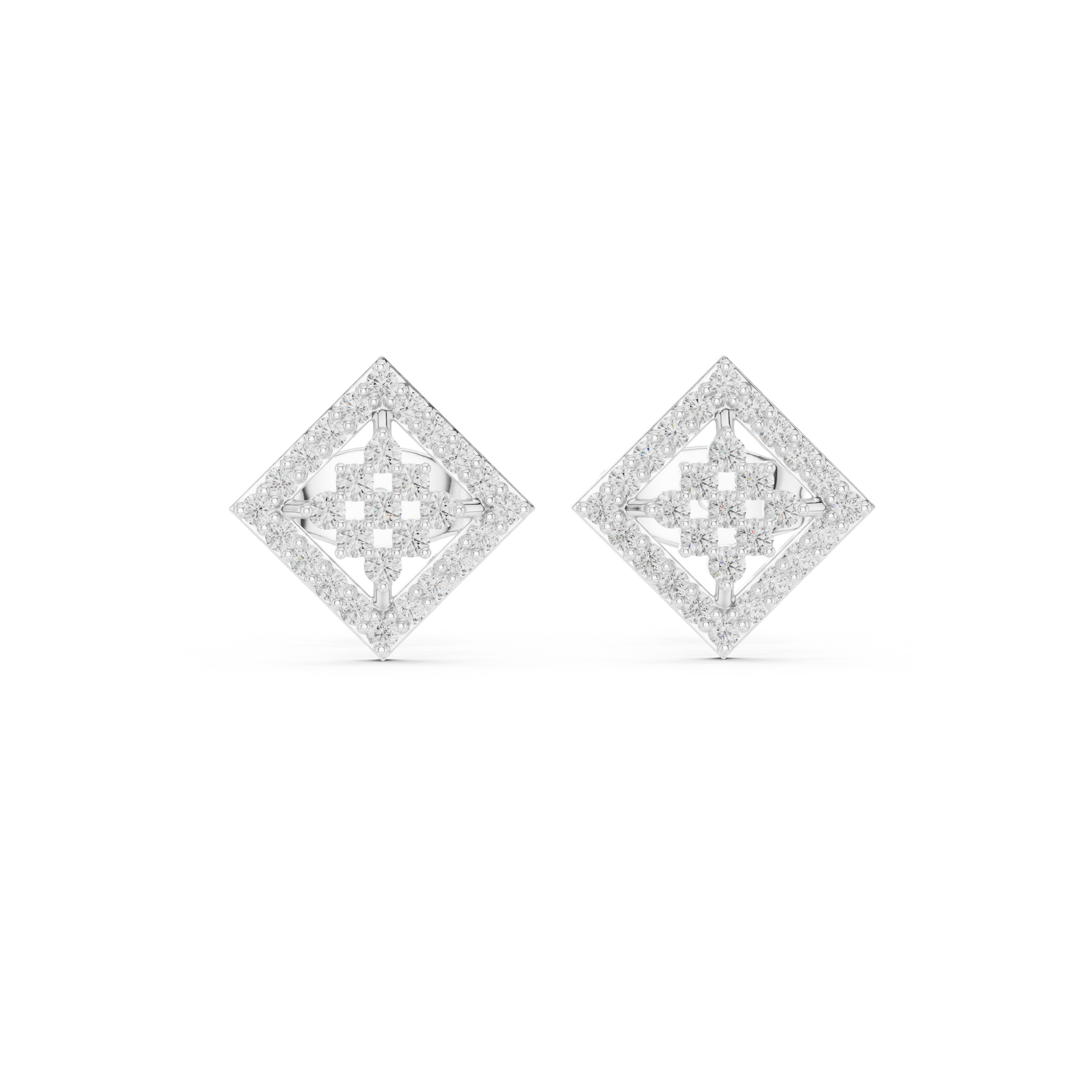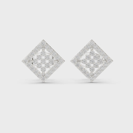 Elevate your everyday look with these striking geometric diamond stud earrings. Featuring a unique open square design with intricately placed diamonds forming a checkered pattern, these earrings blend modern sophistication with timeless sparkle.