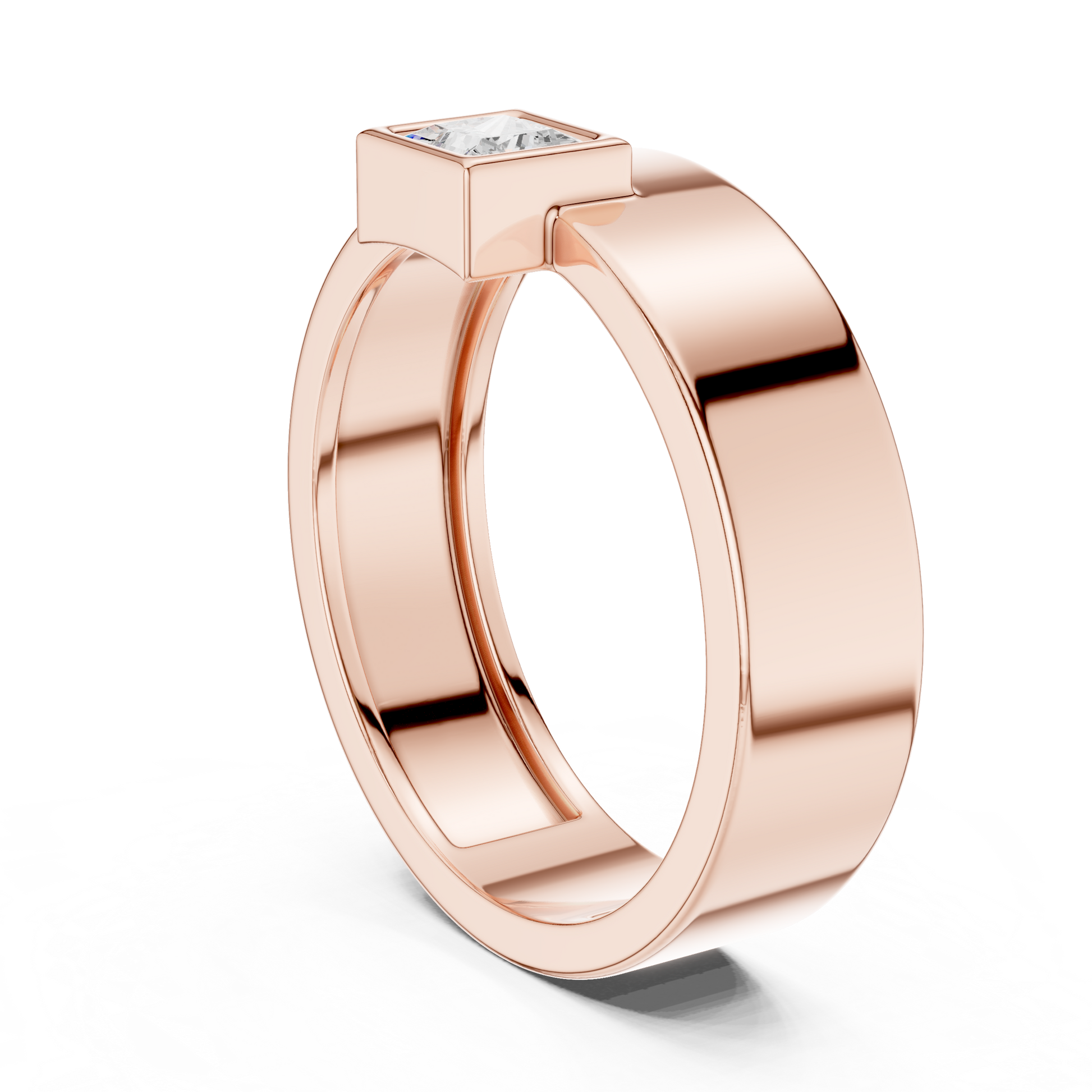 Bezel-set princess-cut solitaire diamond