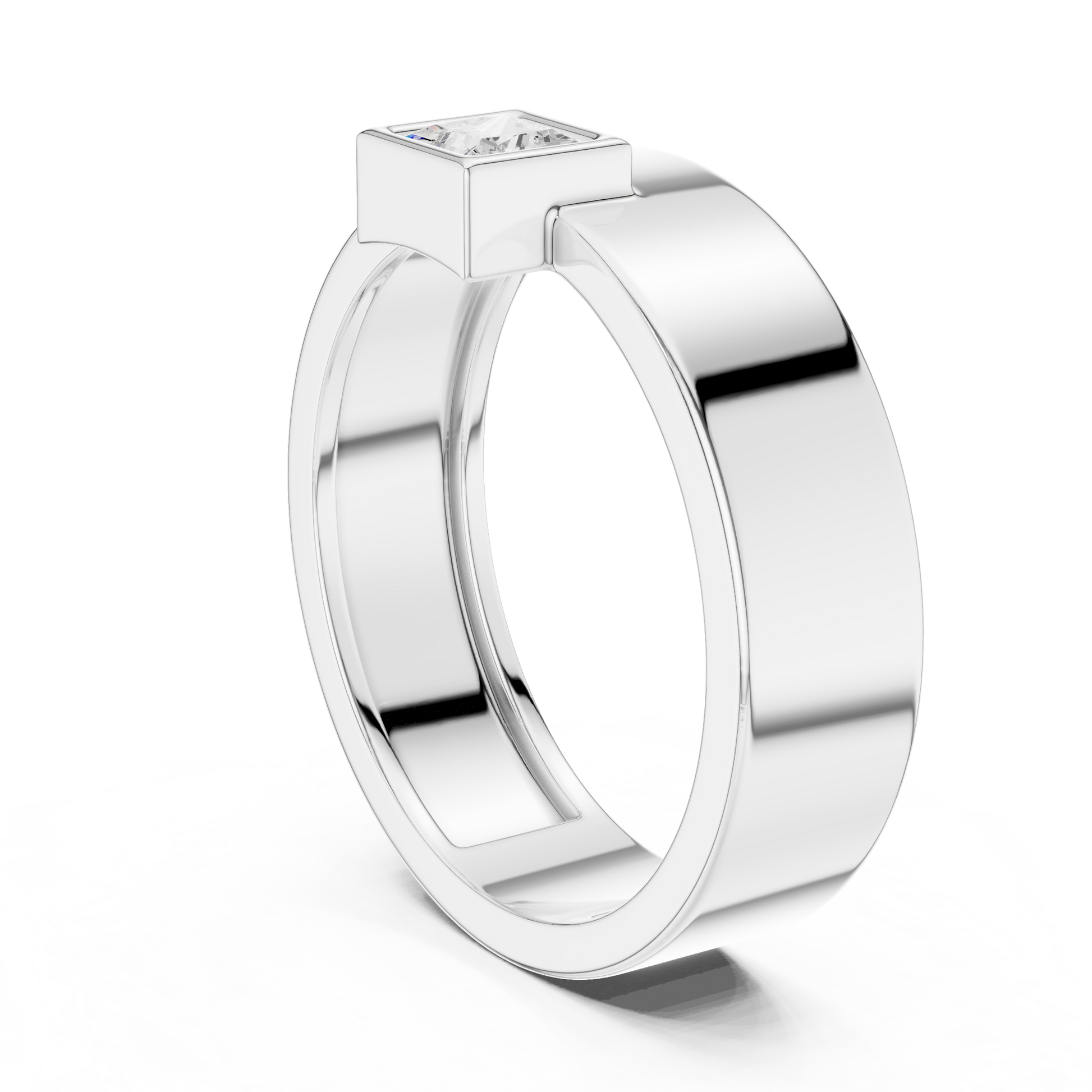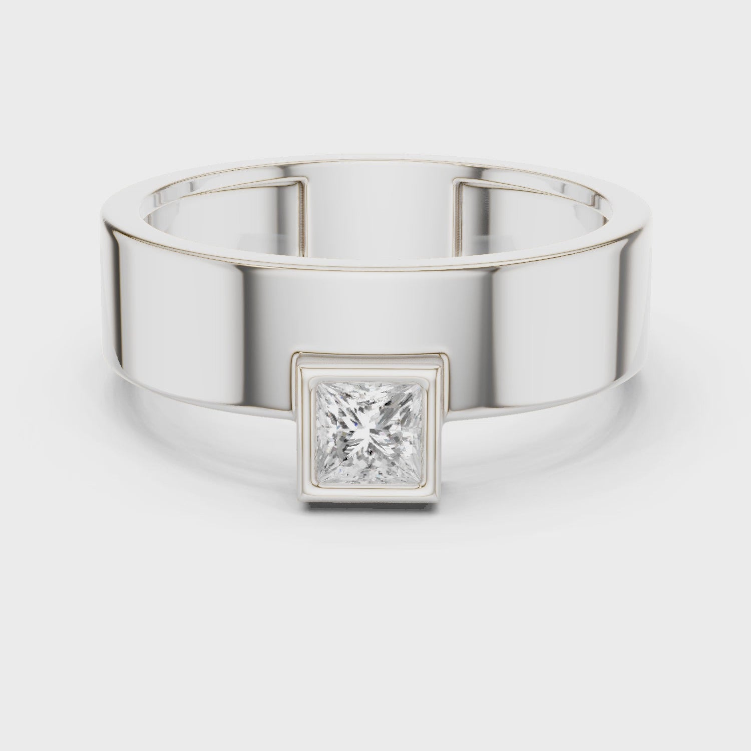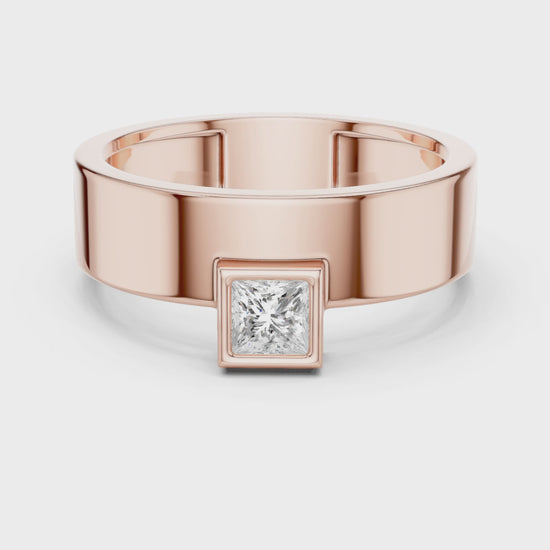 Men’s Bezel-Set Princess Cut Solitaire Ring | Modern Elegance