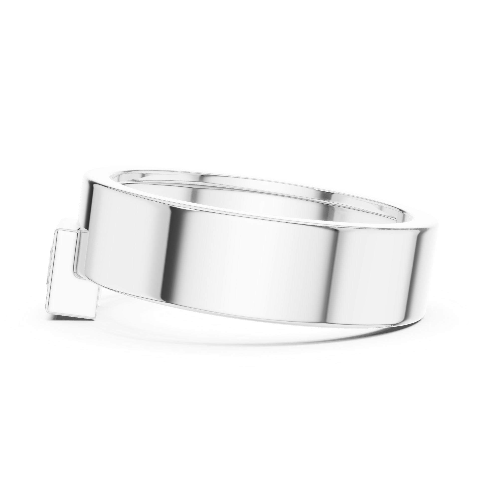 Understated sophistication meets sleek geometry in this men’s solitaire ring, featuring a bezel-set princess-cut diamond in a clean square frame. The solid band with a smooth, polished surface ensures maximum comfort and everyday durability.