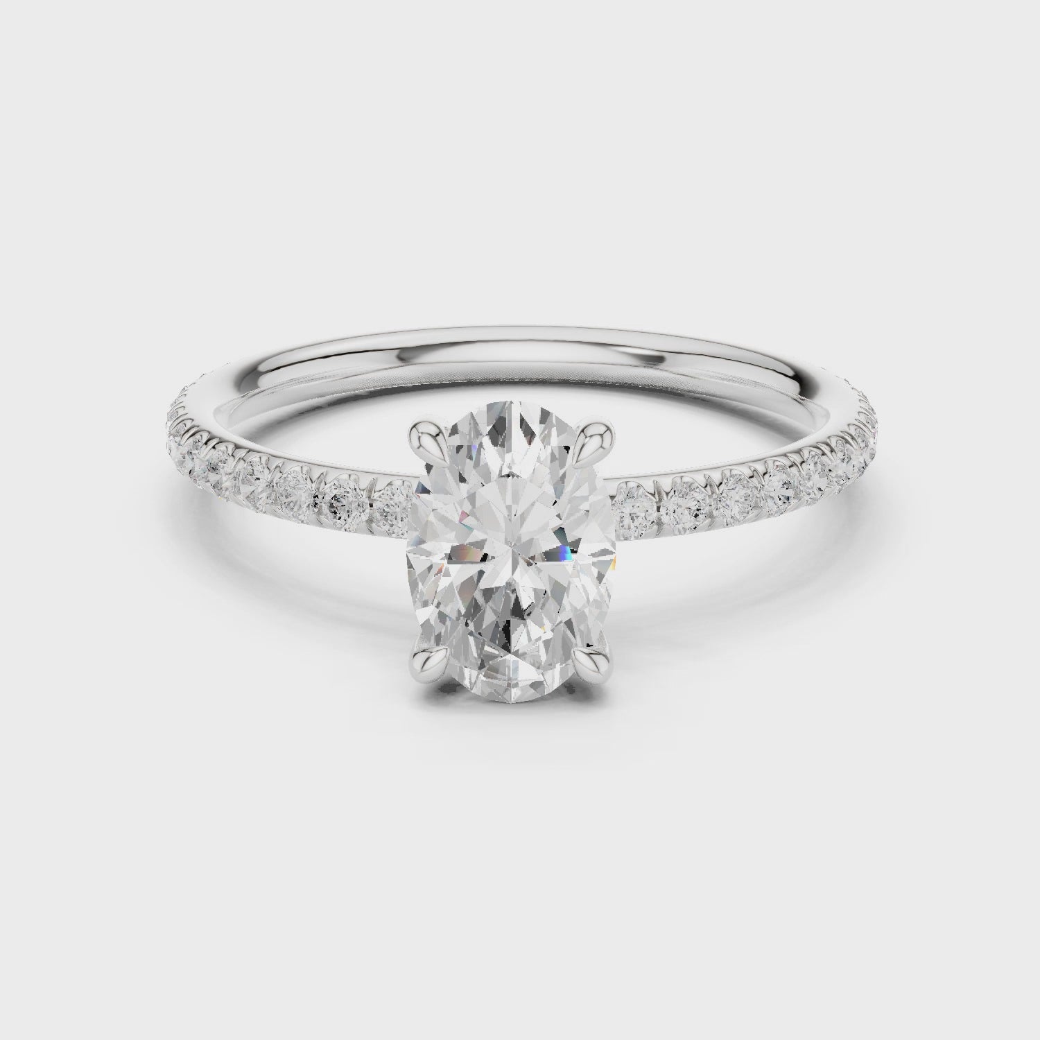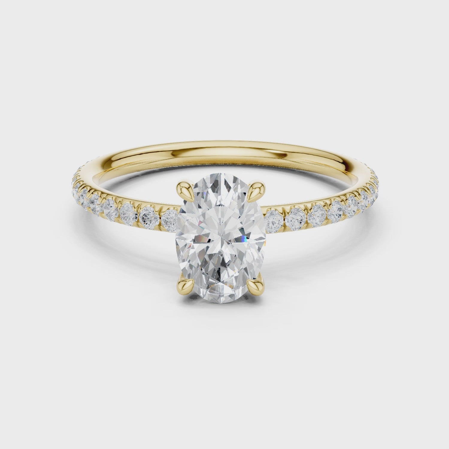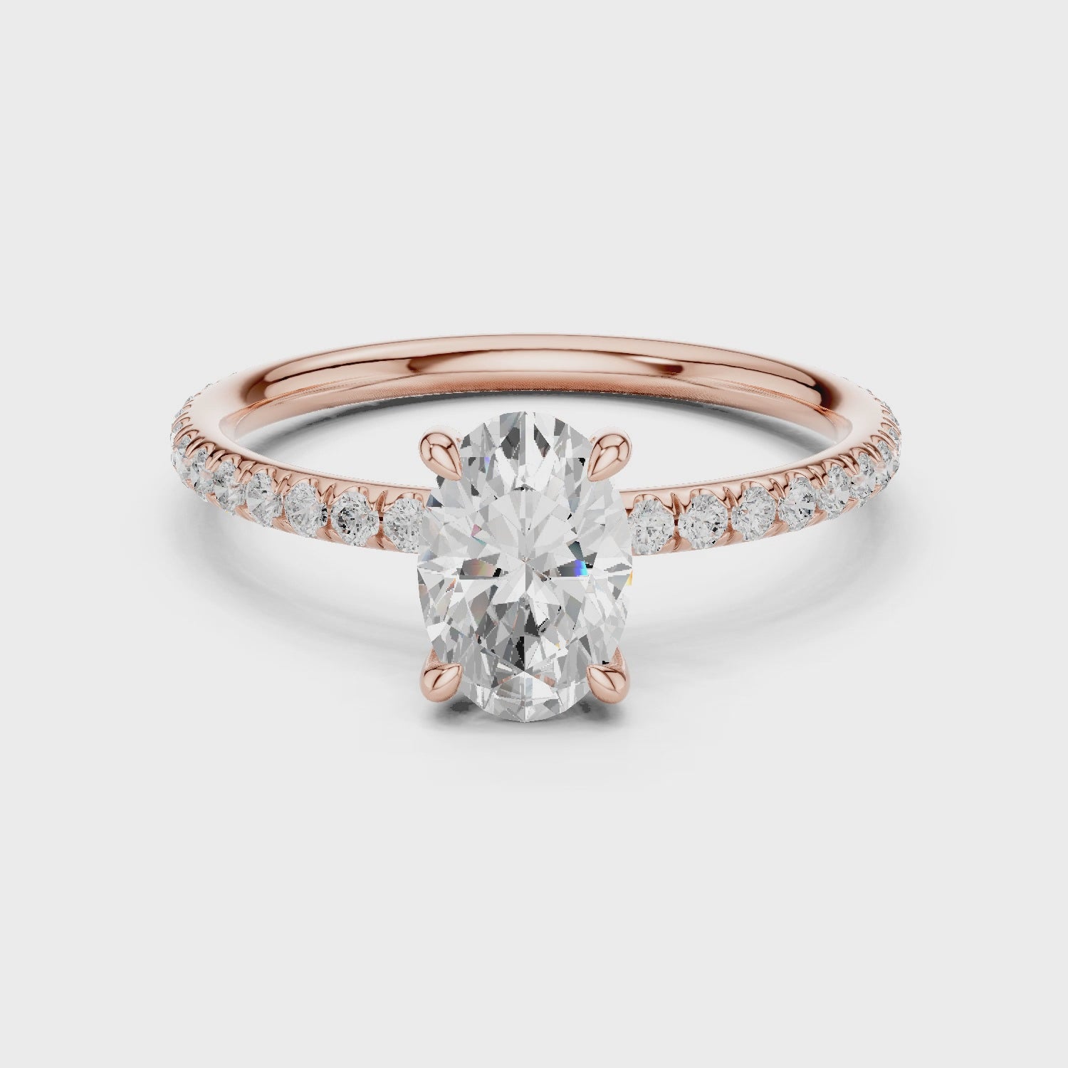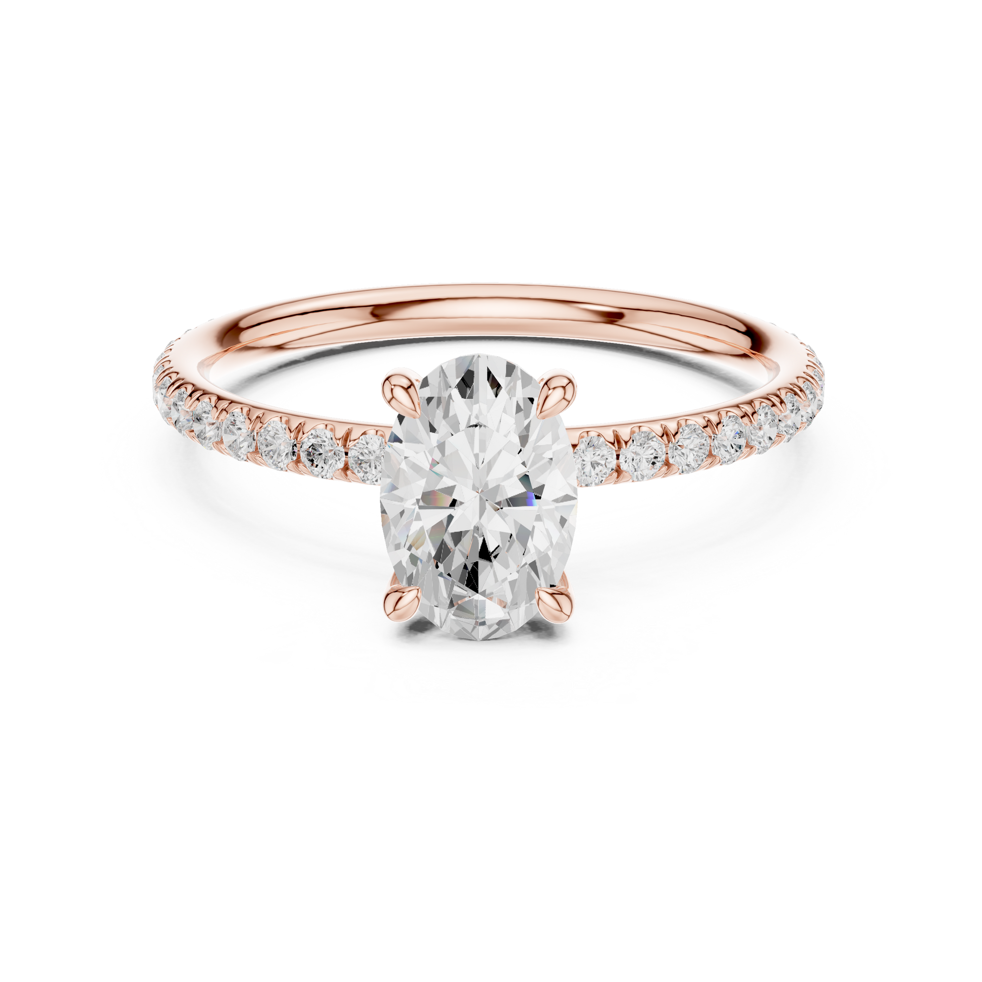 Graceful and captivating, this oval-cut solitaire diamond ring embodies modern elegance with a timeless soul. Set on a warm rose gold band (also available in yellow gold, platinum, and 925 silver), the elongated center stone enhances the finger’s natural beauty, while pavé-set side diamonds add a whisper of sparkle.