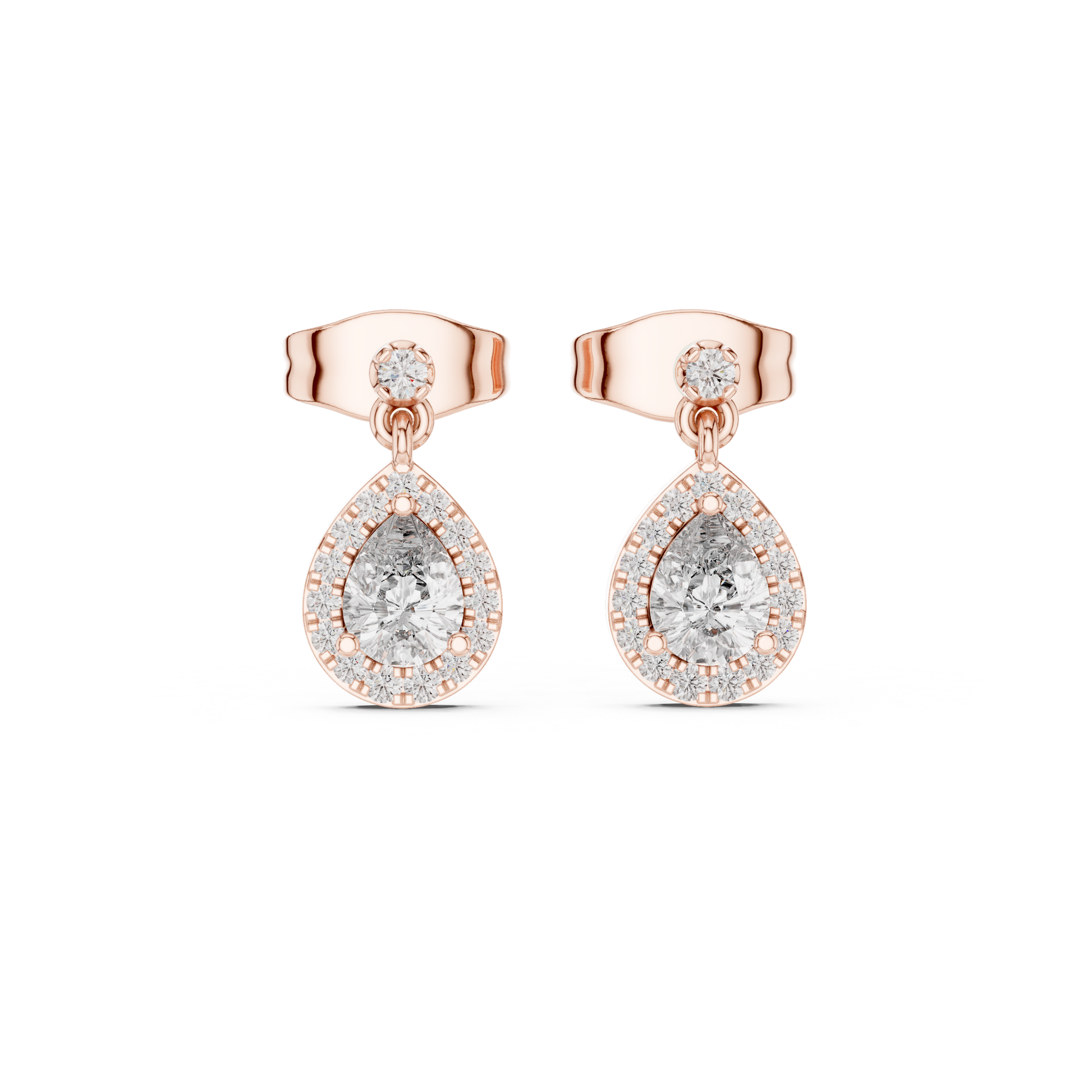 Crafted in rose gold with availability in Yellow Gold, Platinum, and 925 Silver, these earrings can be customized with either Real or Certified CVD Diamonds.