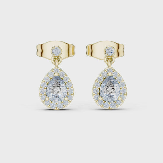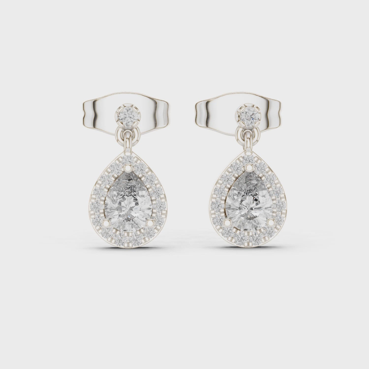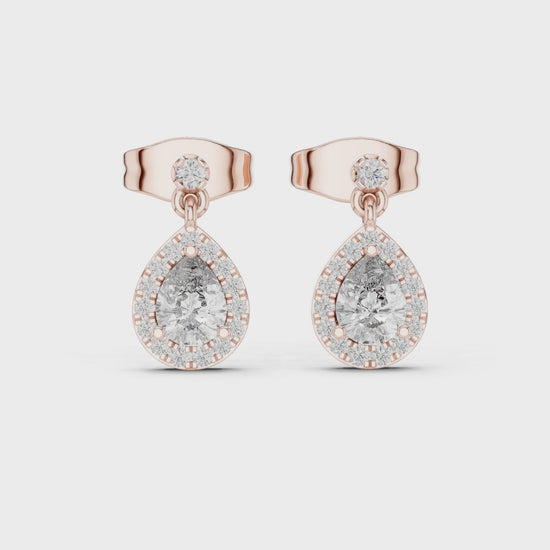 Oval Halo Diamond Drop Earrings | Elegant Dangle Studs