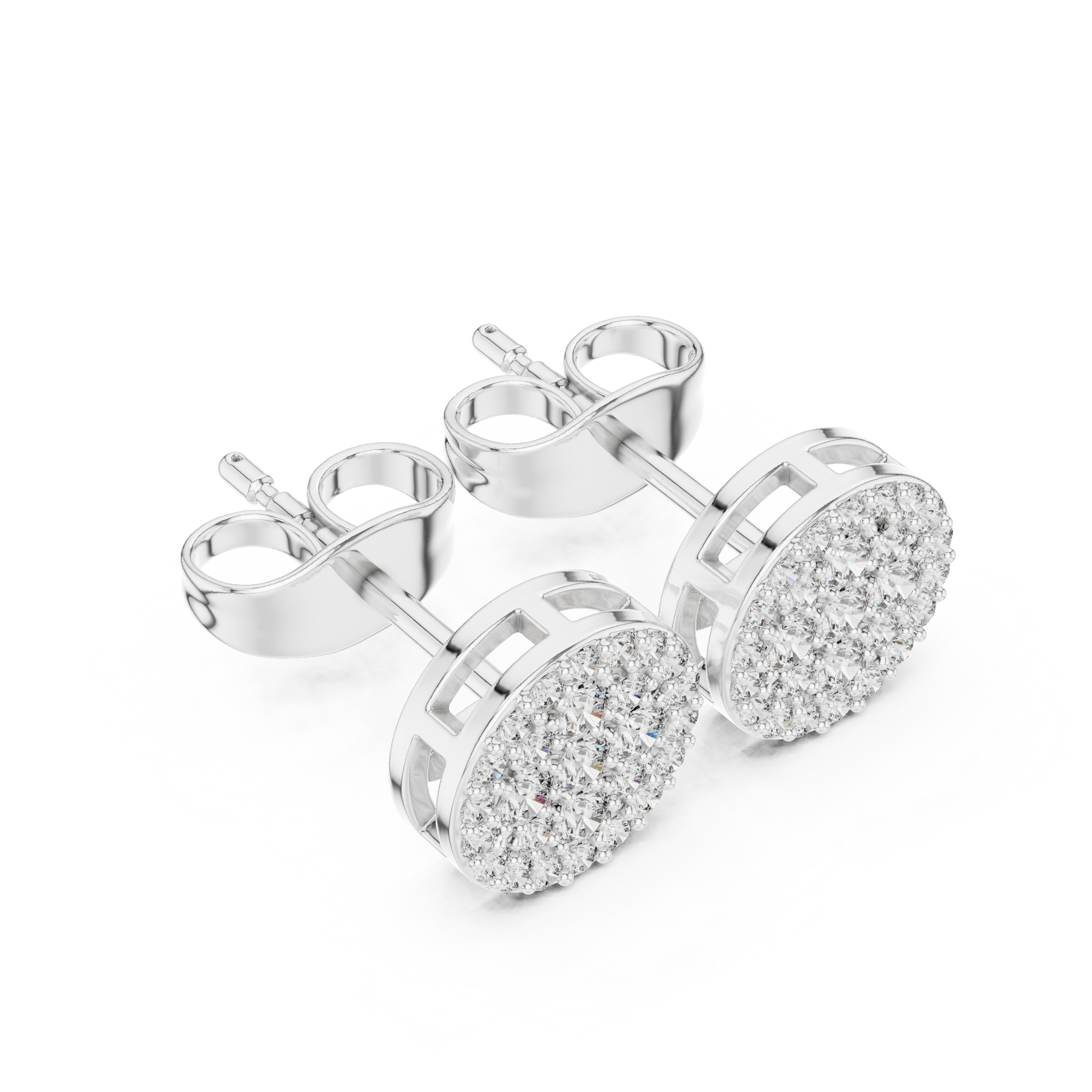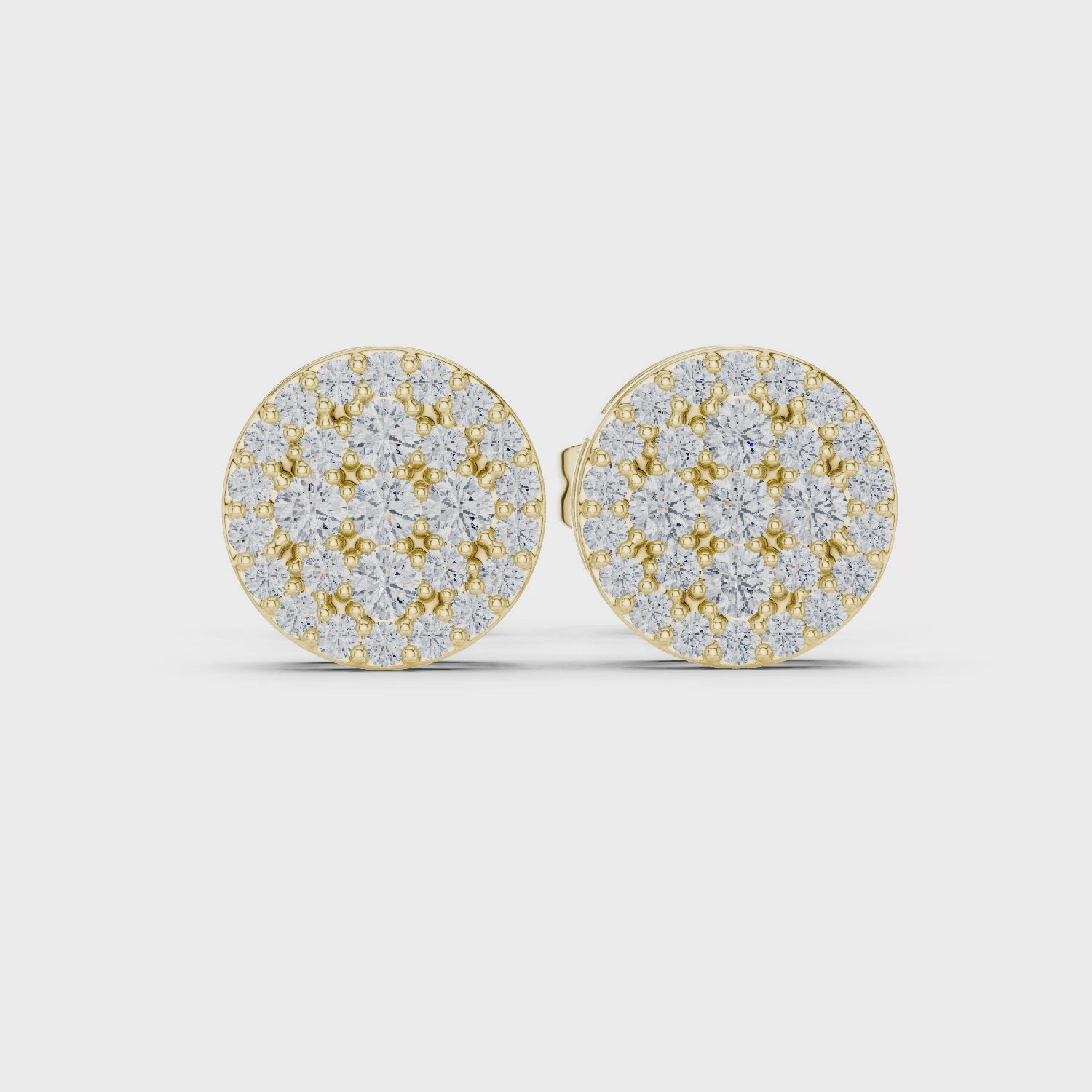 Add a touch of dazzling elegance to your everyday look with these Pavé Cluster Stud Earrings. Crafted in radiant rose gold, each earring features a circular disc encrusted with brilliant pavé-set diamonds for maximum sparkle. The open gallery design adds a modern architectural touch while keeping the earrings lightweight and wearable. Also available in yellow gold, platinum, and 925 silver.