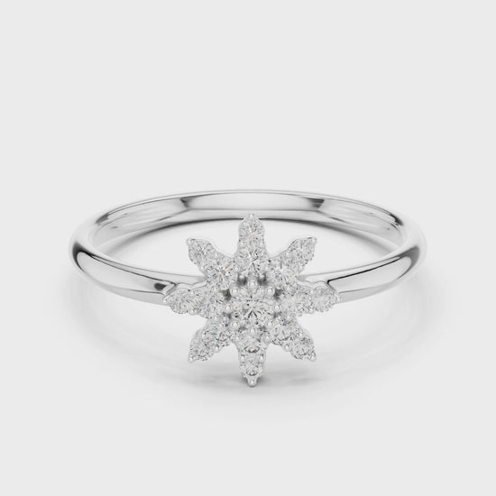 Radiate brilliance with our Starburst Floral Diamond Ring, featuring a dazzling cluster of round-cut diamonds arranged in a star-like floral design. This elegant yet eye-catching piece is designed for women who love timeless sparkle with a modern touch.
