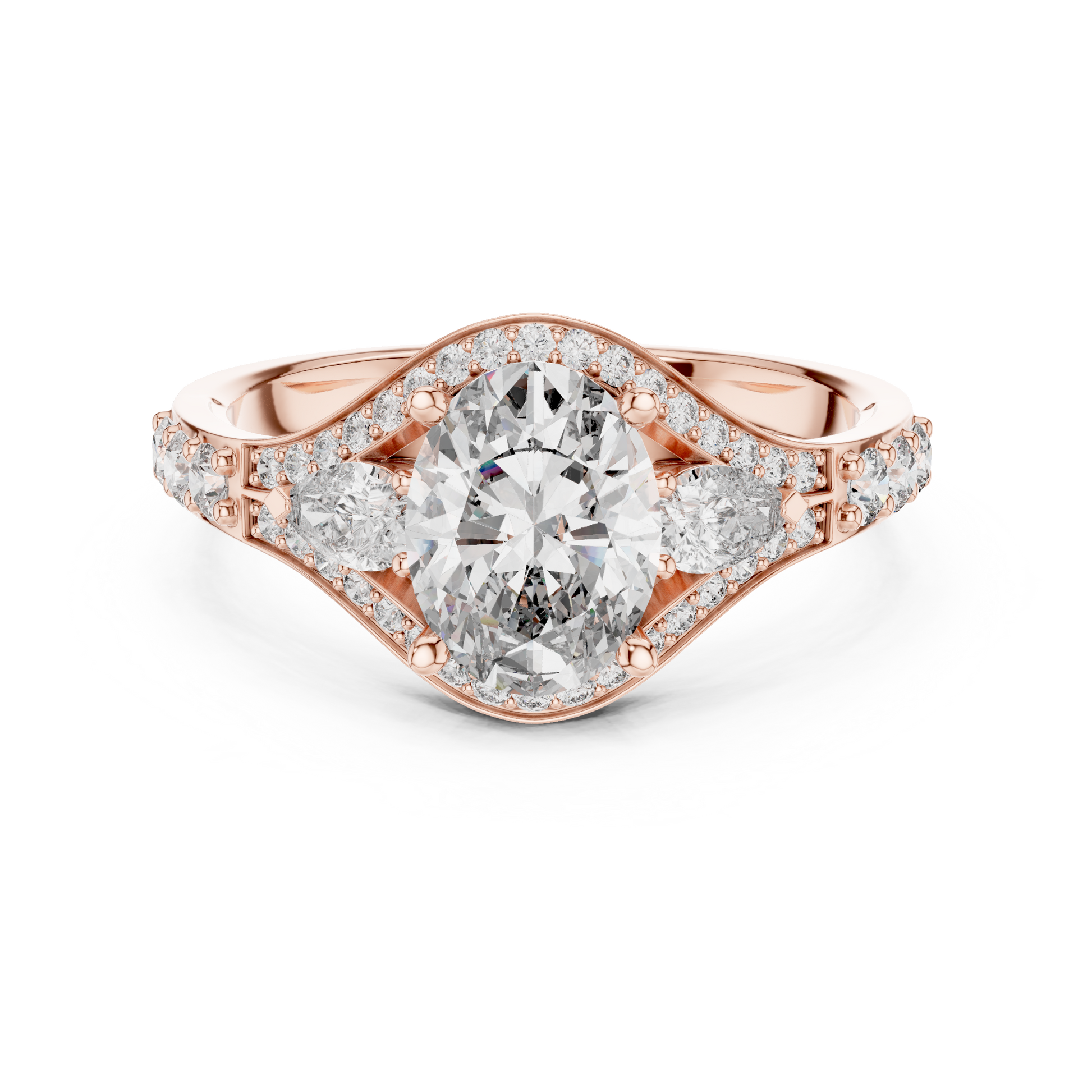Three-Stone Oval Solitaire Diamond Ring in Rose Gold | Available in Yellow Gold, Platinum & 925 Silver